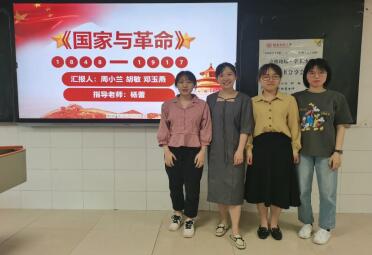 胡敏同学从三个方面对文章内容进行了详细的阐述。三个部分的内容分别是马克思主义国家观的阐释、暴力革命的重要作用以及无产阶级专政的重要思想。