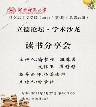 本次学术沙龙分为三个环节,即主持人对本次读书分享会相关信息的介绍;四位主讲人从多角度进行阐发;指导老师杨蕾老师进行点评。