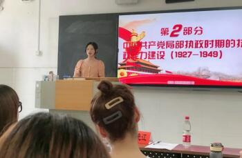 蒋婷婷同学主要围绕中国共产党局部执政时期的执政能力建设进行相关阐述,将该时期分为土地革命时期、抗战时期和解放战争时期,对党进行局部执政的过程中执政能力和执政信心在不断加强。讲述了党的局部执政对于未来党的全面执政有着深远的影响并总结了历史经验。