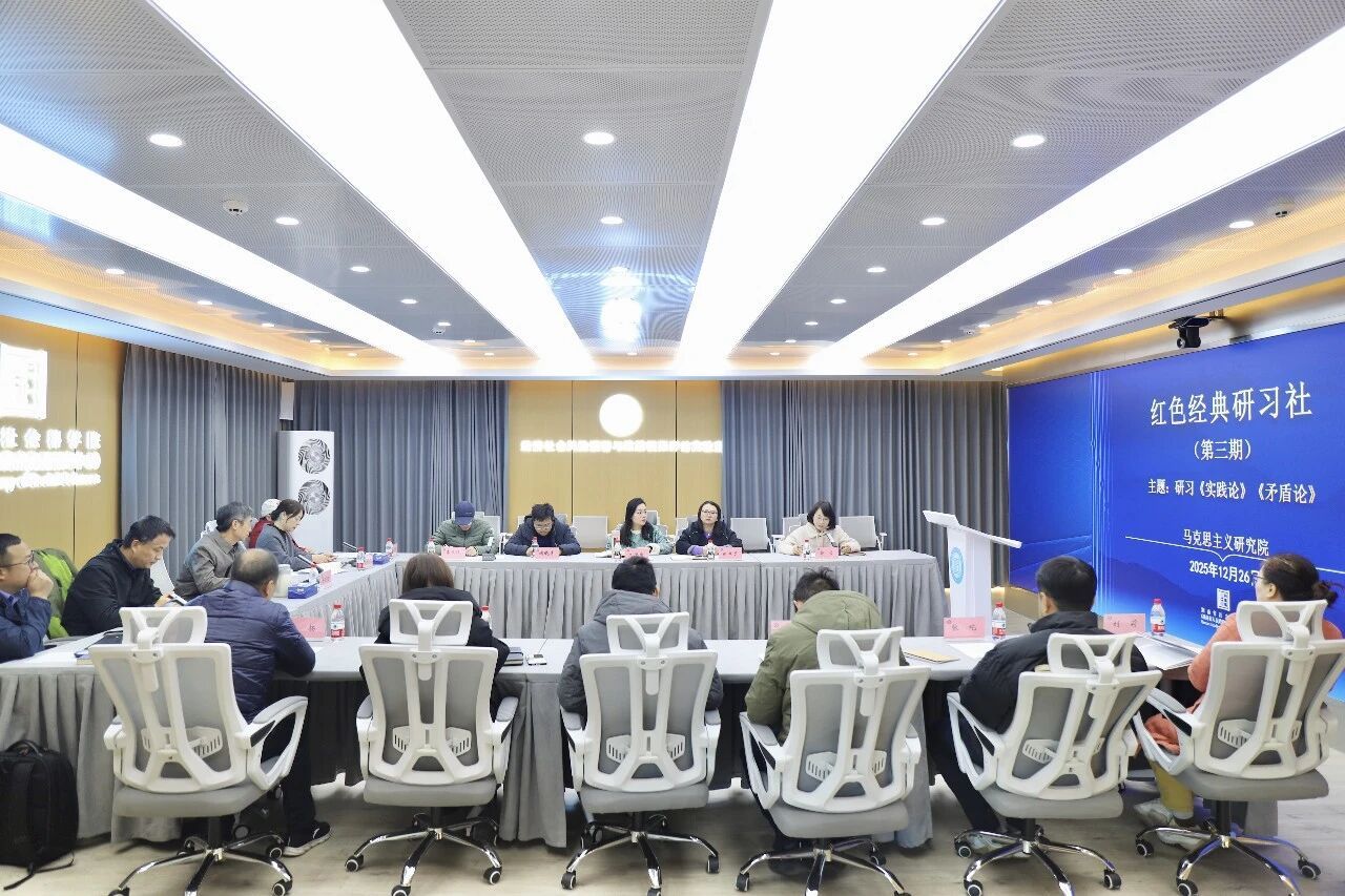 12月26日,湖南省社会科学院(省人民政府发展研究中心)“红色经典研习社”第三期在哲学社会科学实验室举行。本次研习聚焦《实践论》《矛盾论》经典文本,结合党的二十届四中全会精神进行了深入学习和研讨。院(中心)二级巡视员蔡建河出席并点评。