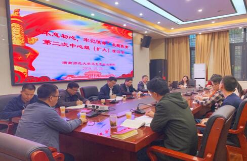 1024日下午,我院党委组织“不忘初心、牢记使命”主题教育中心组(扩大)第二次学习。校党委委员、统战部部长沈又红同志出席会议。学院党委班子成员、教师支部书记和学生支部委员参加学习。副院长刘先江同志以“中国特色社会主义与党的初心和使命”为主题作中心发言。