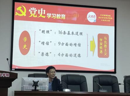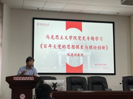 5月20日下午,我院党委组织全院师生进行中共党史专题学习教育。陈德祥教授以《百年大党的思想探索与理论创新》为题作专题辅导,党委书记陈红桂主持专题学习。