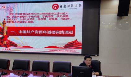 谭吉华副院长聚焦“学史崇德 向上向善”作专题发言,梳理了中国共产党百年道德实践的演进历程,深入解读了社会主义道德体系的内涵,提出了学史崇德、引领的社会风尚的基本路径。他强调,学史崇德就是要崇尚对党忠诚的大德、为民造福的公德、严于律己的私德,弘扬党的优良传统。
