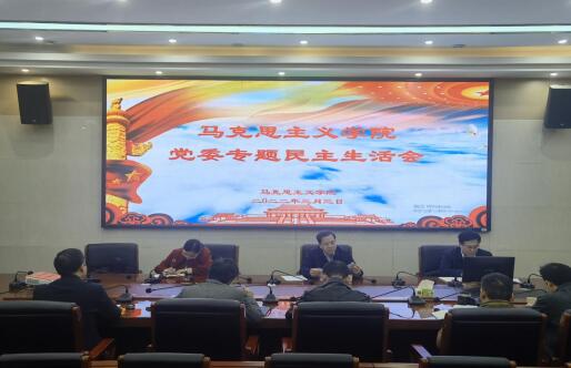 2022年3月3日,马克思主义学院党委召开2021年度专题民主生活会。刘起军校长莅临指导、点评;第二组督导组组长向发意、副组长朱映红、联络员周莎莎现场督导。院党委书记陈红桂主持会议。