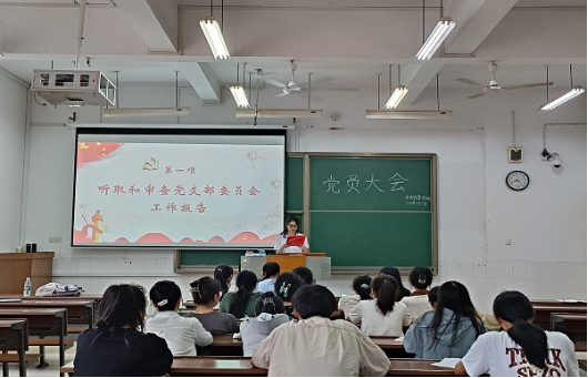 (通讯员 常晓茹 肖榕)9月15日下午,我院本科生第二党支部在景德楼南栋202教室召开党员大会,此次会议主要议程为听取和审查本届党支部委员会工作报告以及选举产生新一届支委会。参会人员为8名正式党员和14名预备党员,会议由学生工作办公室主任章杨主持。