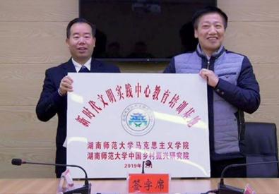 12月25日,马克思主义学院、中国乡村振兴研究院在武冈市挂牌成立新时代文明实践中心教育培训基地,并与武冈市签订《关于开展新时代文明实践中心教育培训的合作框架协议》。武冈市委副书记曹红旗主持签约授牌仪式。