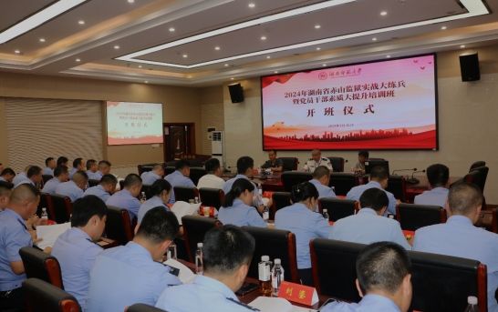 7月31日下午,湖南省赤山监狱实战大练兵暨党员干部素质大提升培训班(第二批)在马克思主义学院立德讲堂正式拉开帷幕。赤山监狱党委委员、公司总经理李昌俊,学院党委书记陈红桂参加开班仪式,汤小红副院长主持仪式。