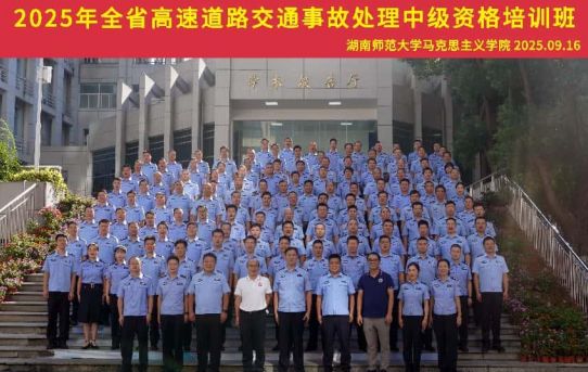9月16日上午,由湖南省公安厅交通管理总队高速公路交通管理一支队主办、学院承办的2025年全省高速道路交通事故处理中级资格培训班,在ok138cn太阳集团学术报告厅隆重举行。湖南省公安厅交管总队高速一支队政委杨秋实、副支队长姚鹏、案件侦办大队大队长周映君、学院党委书记李泳波出席开班仪式。来自全省各高速支队事故处理岗位的120余名骨干民警参训,开班仪式由姚鹏副支队长主持。
