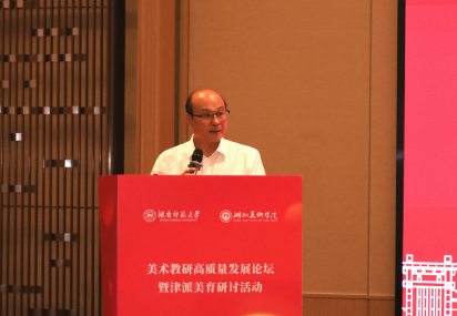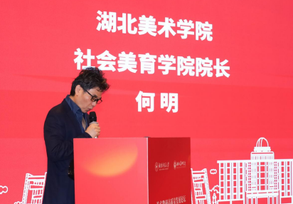 湖北美术学院社会美育学院院长何明代表协办单位致辞,他指出,自建校之初蔡元培先生便题词“推行美育”,百年学府始终将美育精神深植办学基因。本次,学院也将派出来自社会美育、手工艺、中国画、绘画、艺术人文等多学科的专家团队,围绕非遗漆艺、AI技术、中国画写意精神等前沿议题展开深度交流。