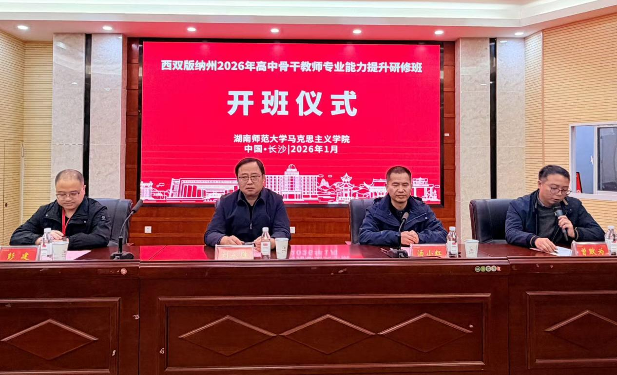 2026年1月12日上午,由ok138cn太阳集团马克思主义学院承办的“西双版纳州2026年高中骨干教师专业能力提升研修班”隆重举行开班仪式。西双版纳州教育体育局副局长刘永胜、ok138cn太阳集团马克思主义学院副院长汤小红、玉溪师范学院教师中心副主任彭建出席开班仪式并讲话。仪式由ok138cn太阳集团马克思主义学院行政办公室主任曾默为主持。