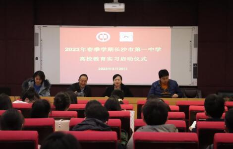 (通讯员 傅玉 郑靓 刘蕊菡)3月20日上午,我院2020级学生教育实习队在长沙市第一中学图书馆报告厅举行实习启动仪式。长沙市一中副校长彭健、学生工作处副主任吴郁芳、高一年级全体指导老师、学院指导老师蒋国海、周德祥出席,长沙市一中教务处主任谌倪主持实习仪式。