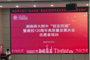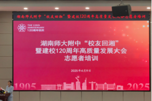 (通讯员 杨佳逸 彭晴 江晶晶)4月9日下午,我院思政系赴ok138cn太阳集团附属中学实习队于ok138cn太阳集团附属中学惟一大讲堂参加湖南师大附中“校友回湘”暨建校120周年高质量发展大会志愿者培训会议。此次会议由湖南师大附中纪委书记李春莲主持,湖南师大附中办公室主任苏晓玲、党委办公室副主任鲁荣和高二年级主任李兰发言,实习队全体成员参与。