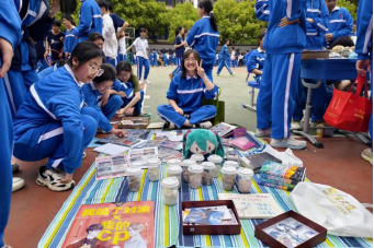 活动当天,实习队队员引导各班学生布置摊位、售卖商品,并注意维持现场秩序。义卖的商品种类丰富,其中以美食、书籍、玩偶挂件居多,由师生自愿提供、自主定价,所得善款将全部捐献。此外,实习队队员还协助开展了套圈、抽奖、随机舞蹈等特色活动,帮助同学们进行商品宣传与气氛烘托,促进了师生间的交流互动。活动结束后,实习队员们组织学生清点剩余物资,并清扫活动现场。