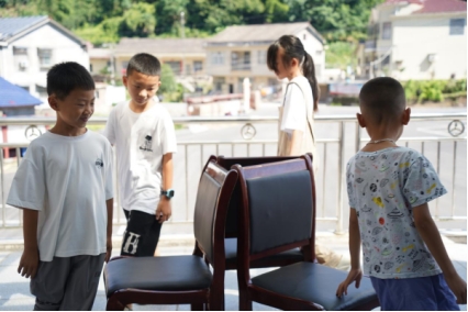 吴念紫启动开营仪式,向学生们介绍了团队的基本情况、夏令营课程安排以及注意事项,并组织实践团成员和学生们分别上台进行了自我介绍。为方便后期教学活动的开展,卢俏洁和刘逸轩引导大家参与了“数字炸弹”和“听音乐抢凳子”等破冰小游戏。此外,教学组成员以贴纸作为游戏获胜的奖励,大大调动了学生们参与活动的积极性,原本略显拘谨的活动现场瞬间热闹起来。这种以小奖励激发大热情的方式,不仅让夏令营的互动环节充满活力,更在轻松愉快的氛围中拉近了师生距离。