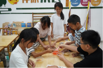 (通讯员 谢金灿 林嘉珉 谢孜仪)我院“梦想+”暑期社会实践团在支教活动中,设计并开展了一系列特色课程。7月7日,实践团教学组成员谢金灿开设茶特色美食课,带领学生制作茶冻,为暑期夏令营课堂注入别样的活力。