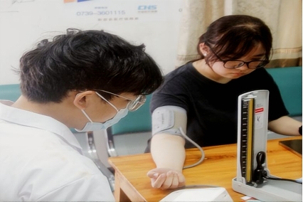 为确保活动如期开展,实践团成员提前和卫生室负责人唐梦联系,确定义诊时间和场地,并提前通知社区居民义诊的时间和内容。活动中,实践团活动组成员和医生唐梦用专业知识和严谨态度,为前来检查的社区居民进行现场把脉问诊和测量血压等义诊服务。对于检查出个别居民有血压偏高或偏低的问题,义诊成员向其提出了个性化的健康指导意见和地域化的合理膳食建议,并向社区居民宣传普及了健康知识和预防行为,叮嘱居民要增强保健、定期检查、及时治疗、合理用药。义诊活动结束,活动组成员整理医疗器械和居民血压数据,并向坪新社区卫生室捐赠一套水银血压计和听诊器。