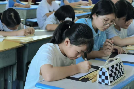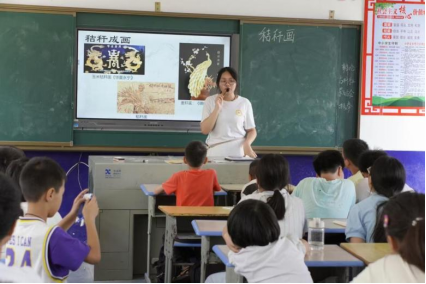 学生动手创作秸秆画
