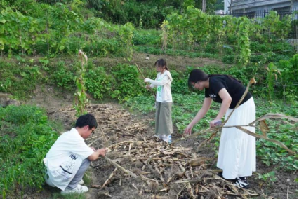 实践团成员捡拾秸秆